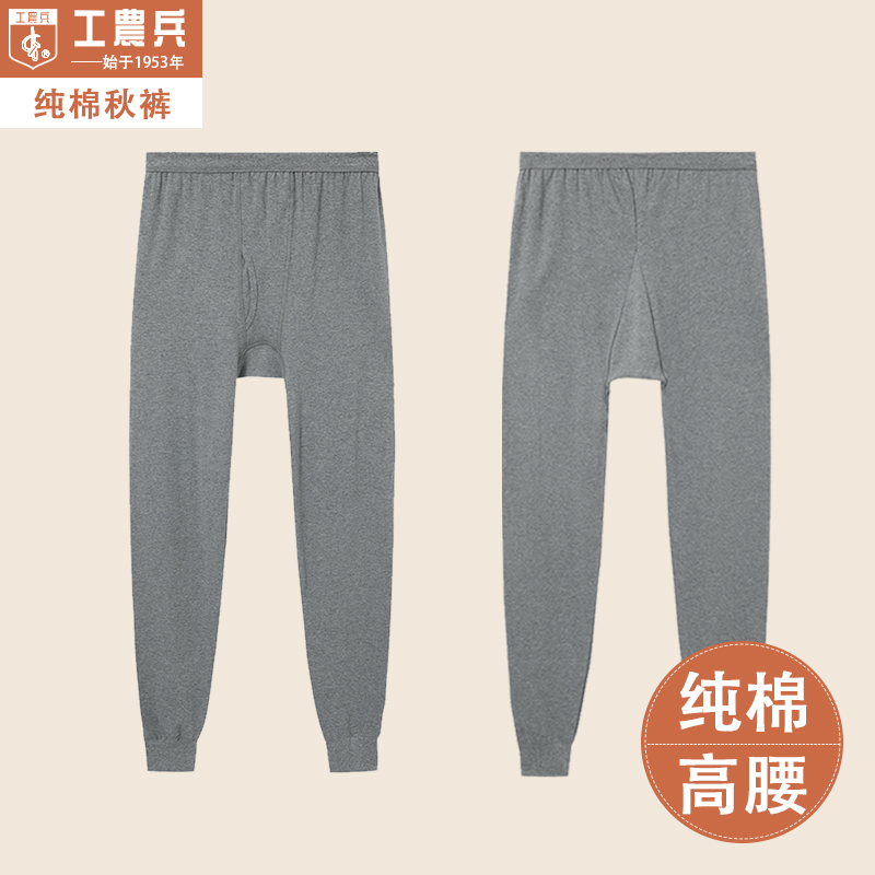 工农兵男士秋裤男纯棉薄衬裤保暖裤春秋中老年全棉打底裤高腰线裤