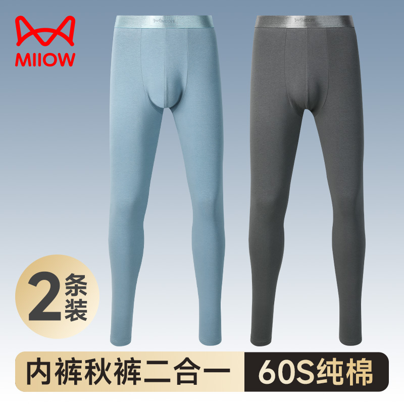 猫人男士秋裤纯棉100%全棉保暖裤男式线裤薄款衬裤秋季打底裤男款