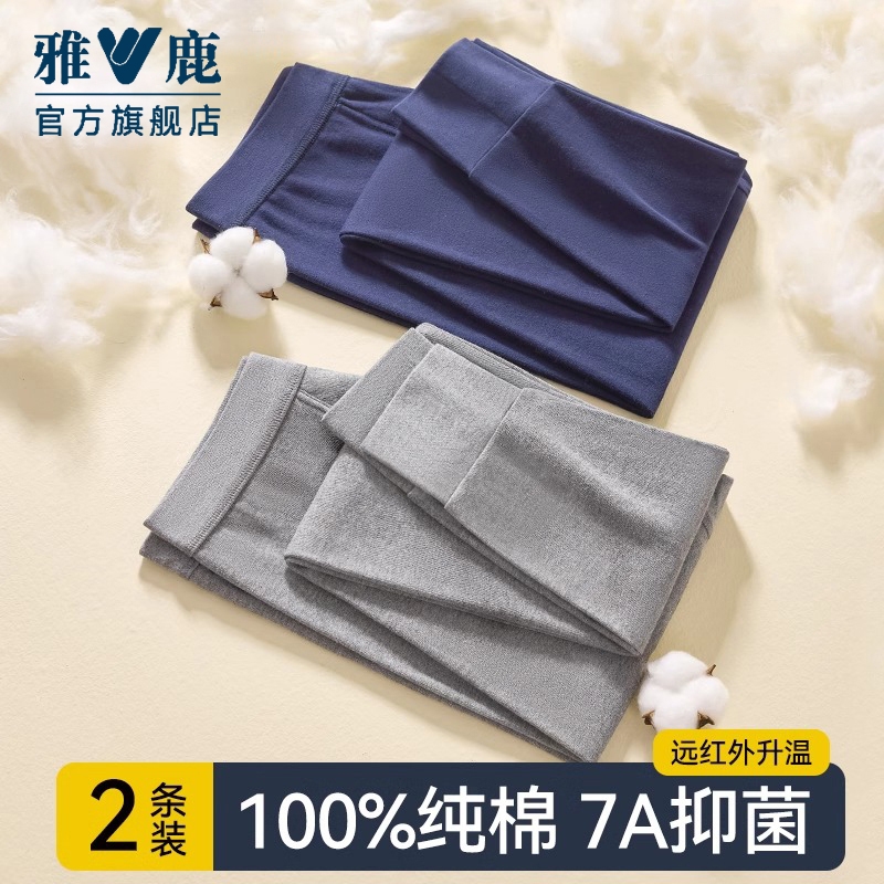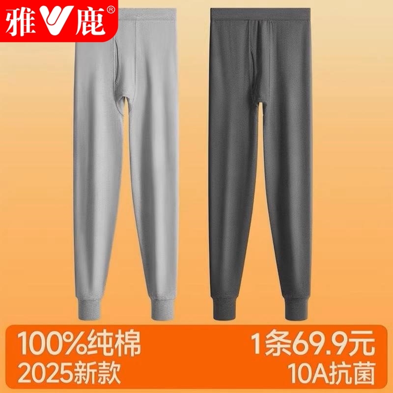 雅鹿男士秋裤男款纯棉全棉打底裤2025秋冬季薄款保暖裤线裤外穿