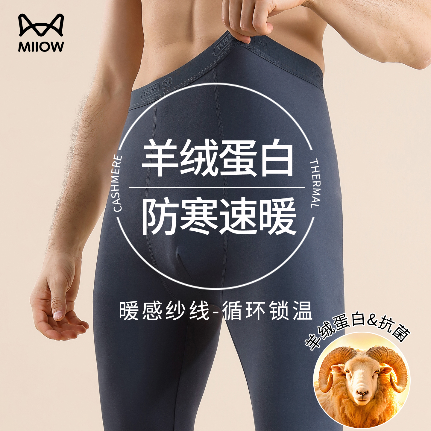 猫人保暖裤男士秋裤2025秋冬季新款打底裤薄款线裤青少年羊毛棉裤