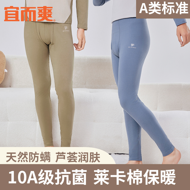 宜而爽男士秋裤纯棉线裤保暖裤青少年薄款内穿秋冬季打底衬裤全棉