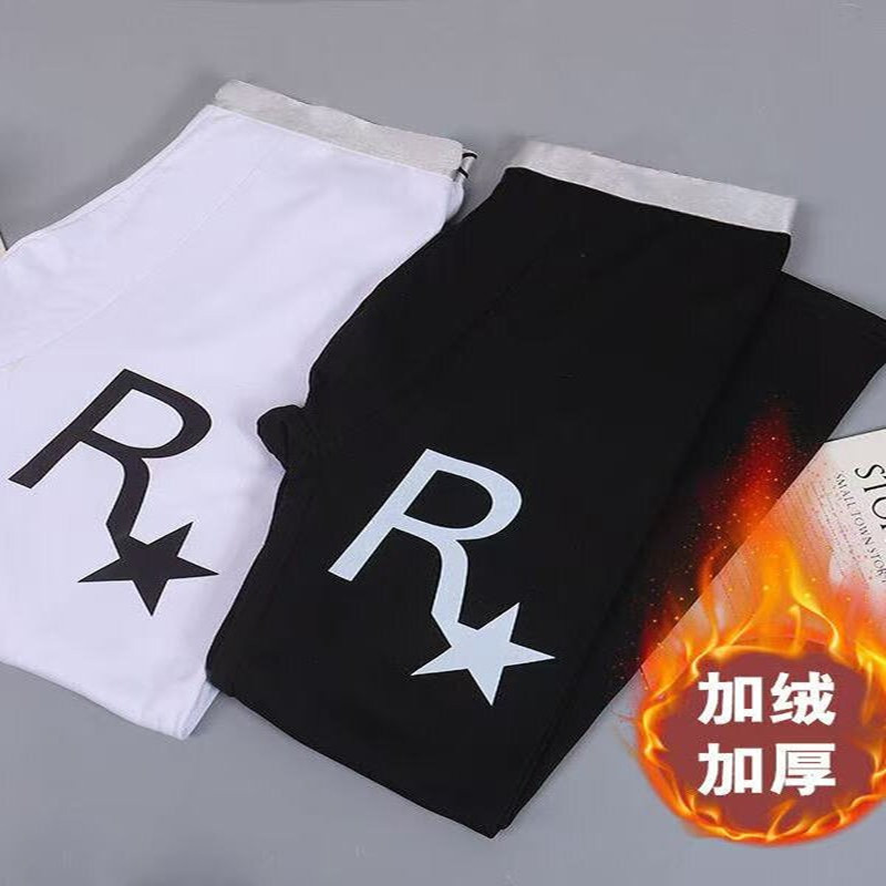 男士秋裤加绒保暖打底裤男青年学生潮流个性R星线裤修身薄款衬裤