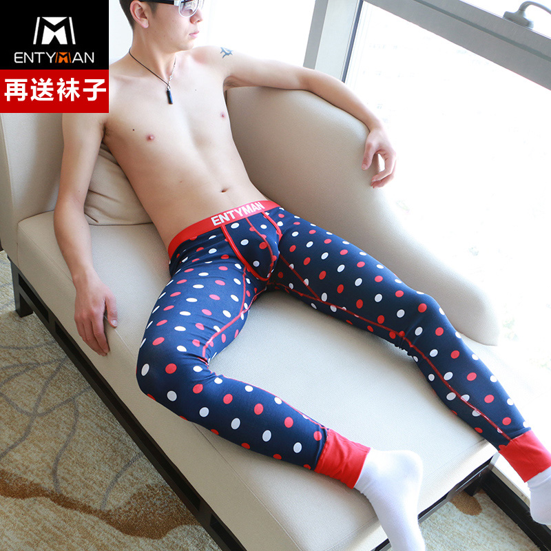 性感男士秋裤单件薄款 青年棉质低腰印花打底秋冬修身秋冬衬裤 潮
