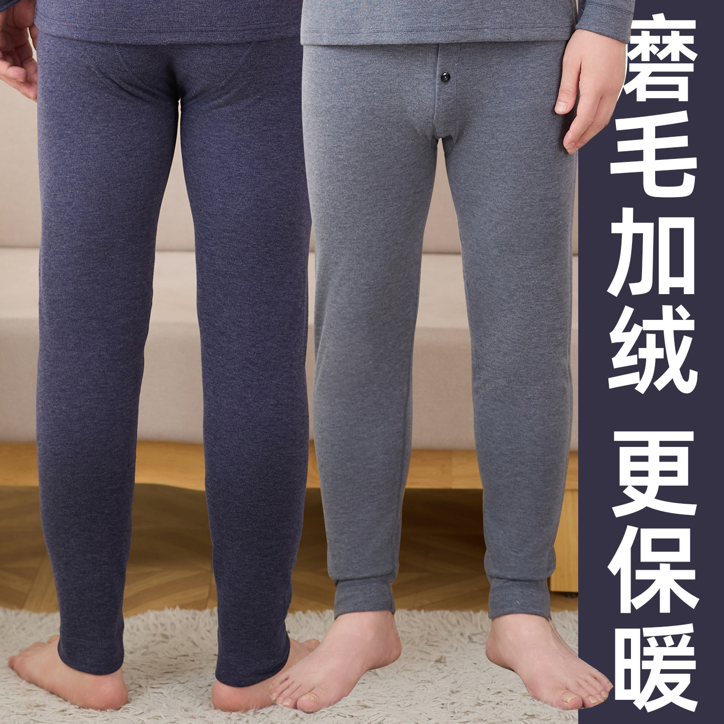 加厚加绒男士秋裤2025新款青少年男款保暖裤打底羊毛护膝绒裤秋冬