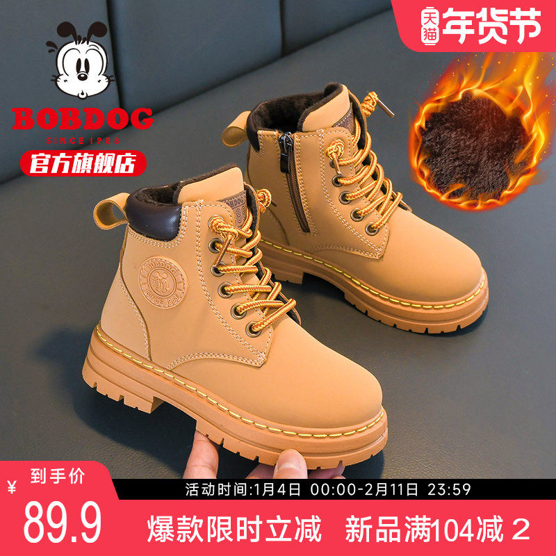 - 儿童马丁靴女冬 加绒