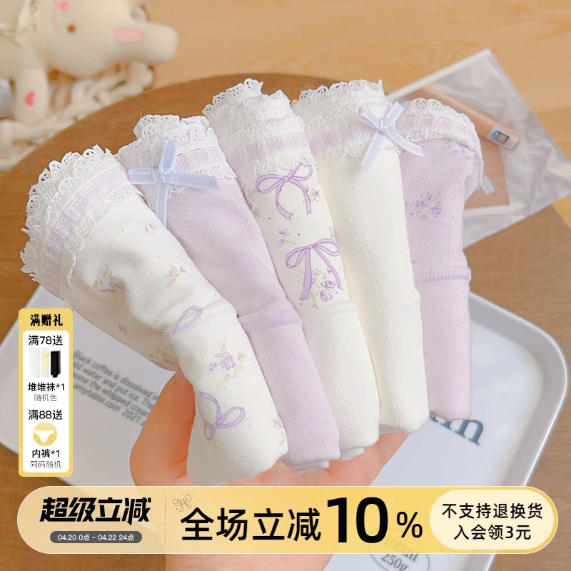 【三条装】内裤女士纯棉裆白色蕾丝花边日系透明蝴蝶结女生三角裤