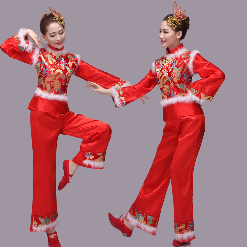 秧歌舞服演出服扇子舞蹈服装秋冬中国风腰鼓打鼓服喜庆广场舞新款