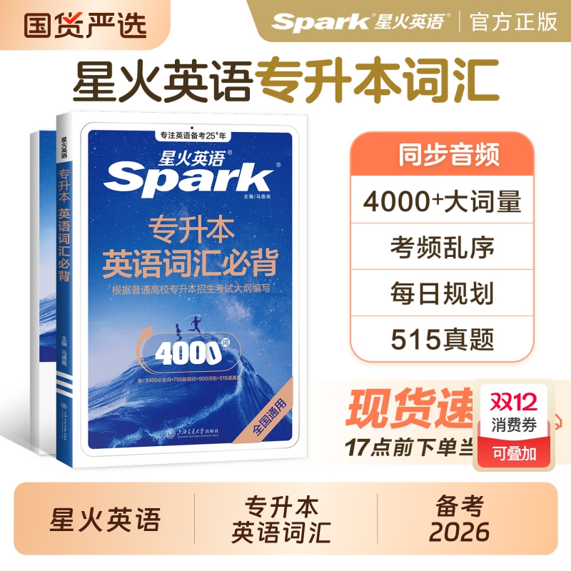 2026星火英语专升本英语词汇必背专升本复习资料成人高考专升本真题山东浙江苏山西广东河南湖北安徽福建四川专转插本复习英语2025