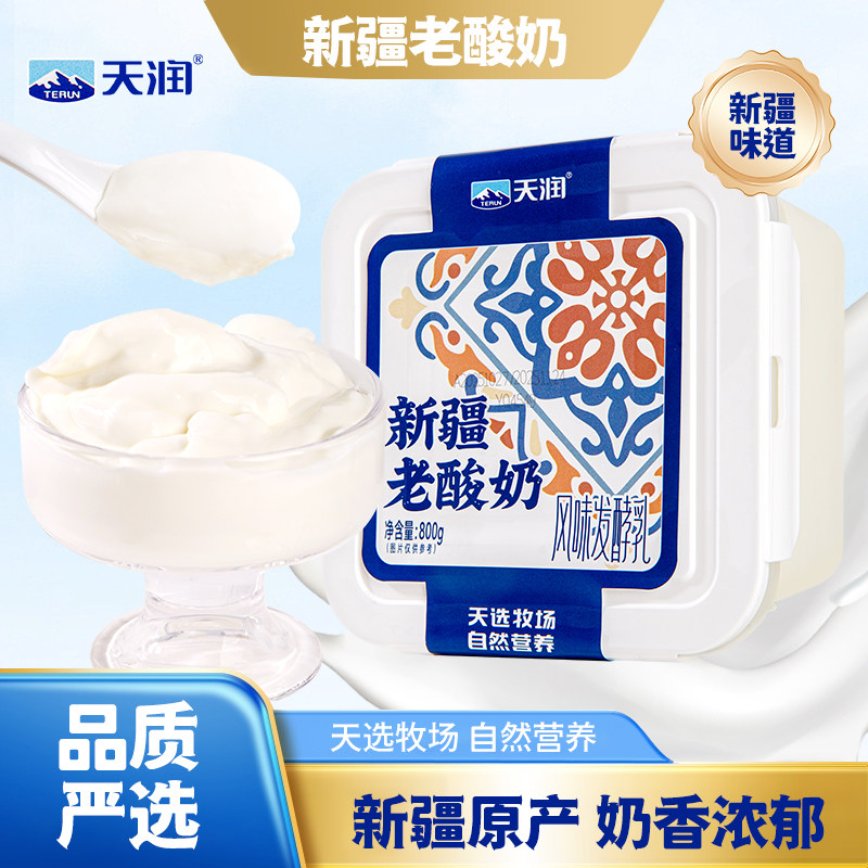 新疆直发天润酸奶喀拉峻凝酪全脂风味发酵乳800g保鲜盒装酸奶