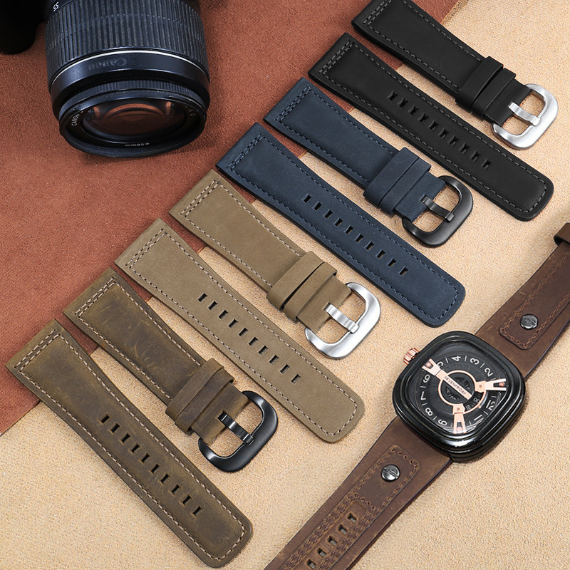 适配七个星期五真皮手表带SEVENFRIDAY磨砂牛皮男士腕带p1p2 28mm