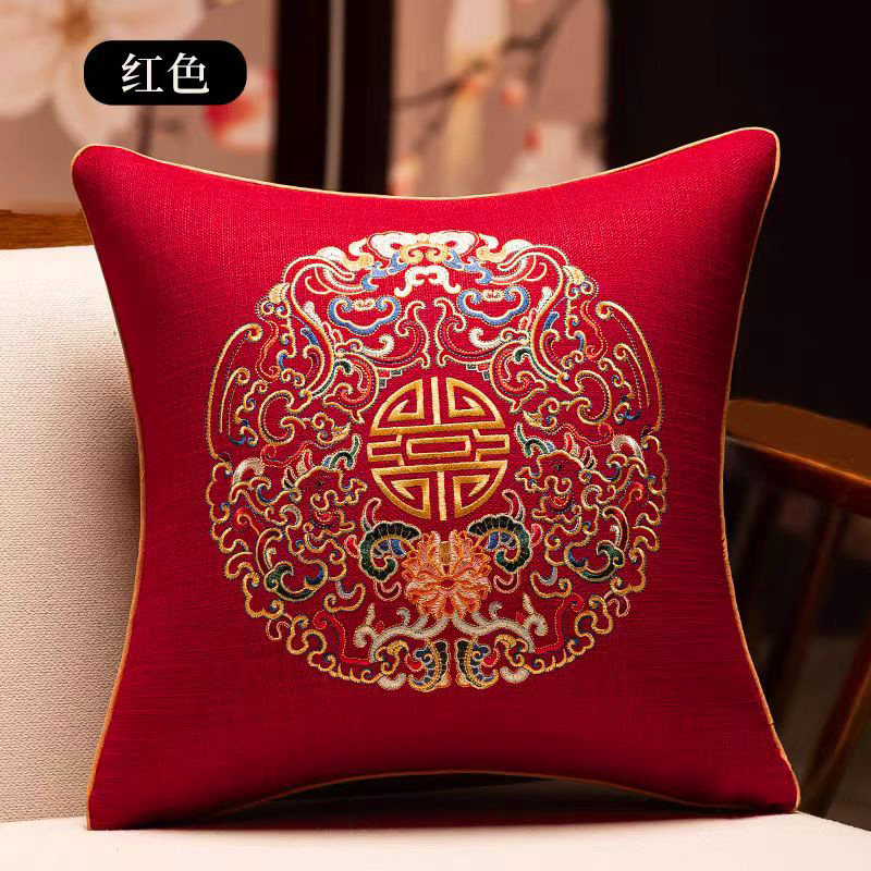 新中式抱枕红木沙发客厅靠垫椅子大靠背垫红色结婚福字刺绣靠枕套