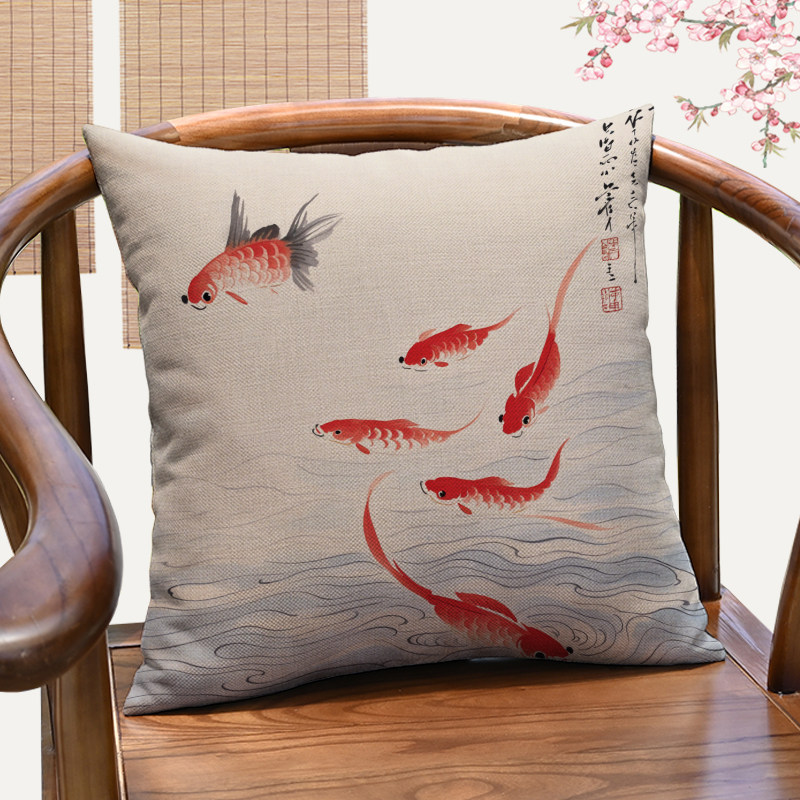 新中式年年有余抱枕国风锦鲤客厅红木沙发靠垫办公室茶室圈椅腰枕