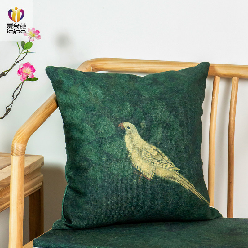 新中式抱枕现代红木沙发靠垫客厅大靠背花鸟图棉麻中国风古典靠枕
