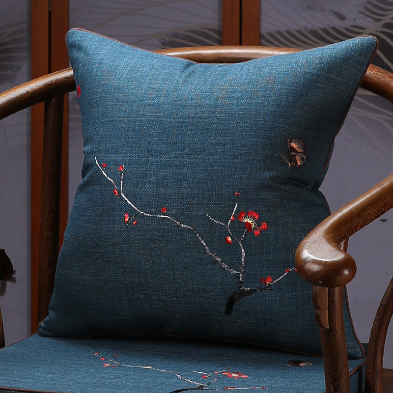 中式棉麻刺绣抱枕红木沙发靠垫套中国风客厅实木家具靠枕床头腰枕