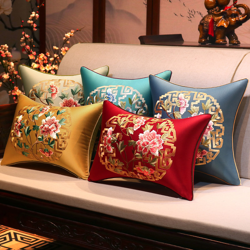 中式抱枕客厅红木沙发靠垫床头靠背垫腰垫中国风绣花靠枕套不含芯