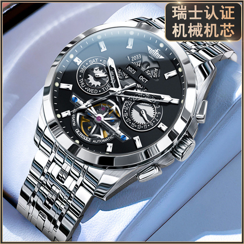 瑞士认证品牌新款简约男表进口机芯全自动机械表精钢表带男款十大