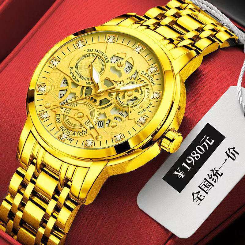 冠琴手表男款全自动机械表商务休闲精钢带男士手表石英表男表新款