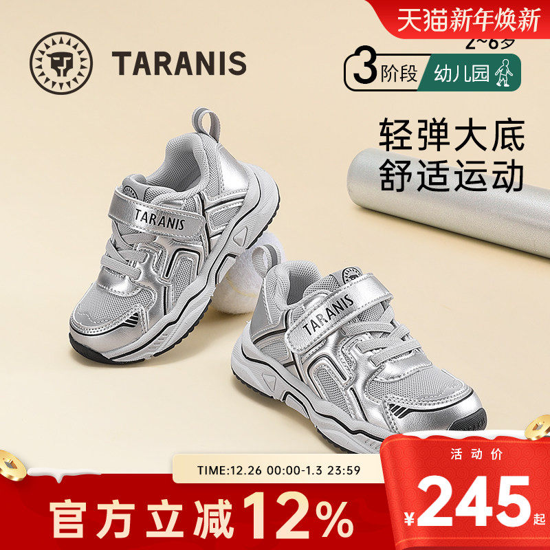 泰兰尼斯运动鞋春秋新款男童防滑软底运动鞋女童舒适透气跑步鞋子