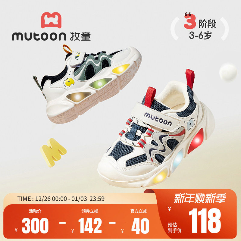 牧童儿童运动鞋男童闪灯鞋春秋新款轻便减震女童透气网面跑步鞋子