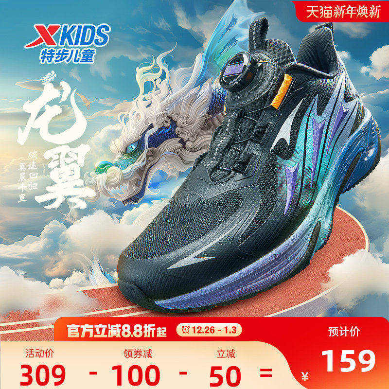 龙翼特步儿童网面透气男童运动鞋小学生旋钮扣跑步鞋春秋男孩鞋子