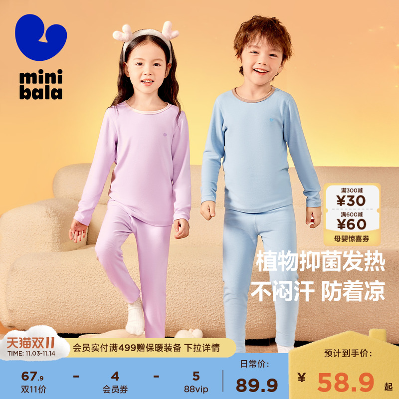 【发热暖芯】迷你巴拉巴拉男童女童内衣套装贴身睡衣春季秋衣秋裤