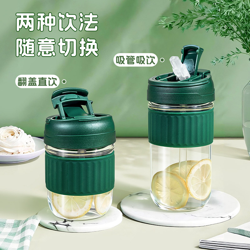 高颜值简约大容量随行吸管玻璃杯学生用便携ins风水杯果汁奶茶杯