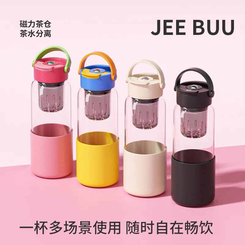 2025新款磁弹泡茶杯茶水分离玻璃杯女士便携耐高温随行玻璃水杯子
