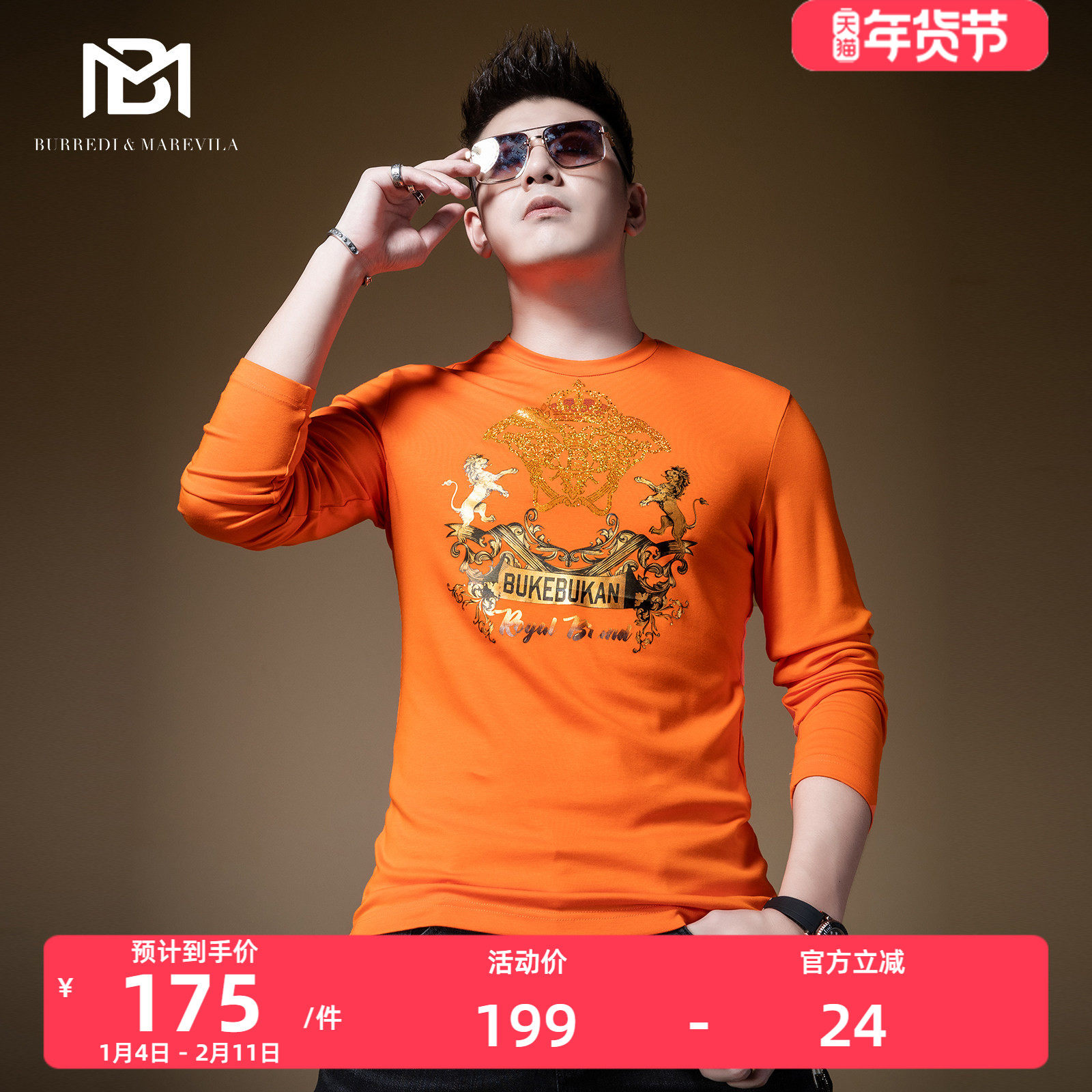 BM欧洲站复古印花高级感卫衣男潮牌圆领套头长袖t恤2021秋季新款