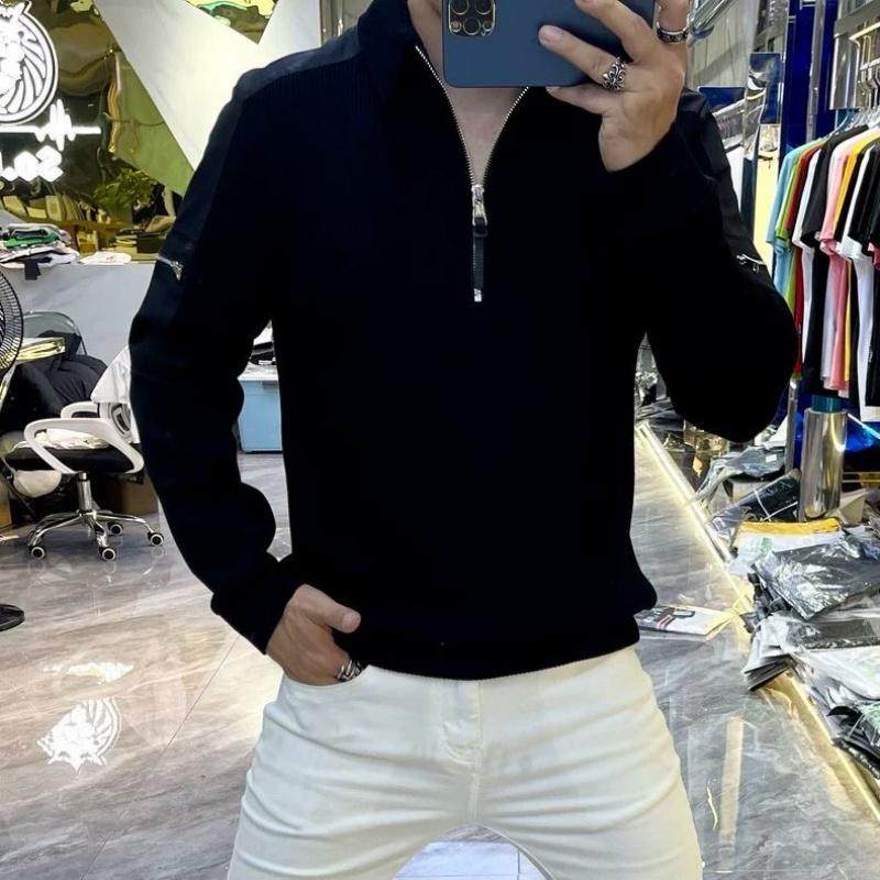 2025新款欧洲站时尚高端设计拉链套头上衣服男士潮牌圆领长袖卫衣