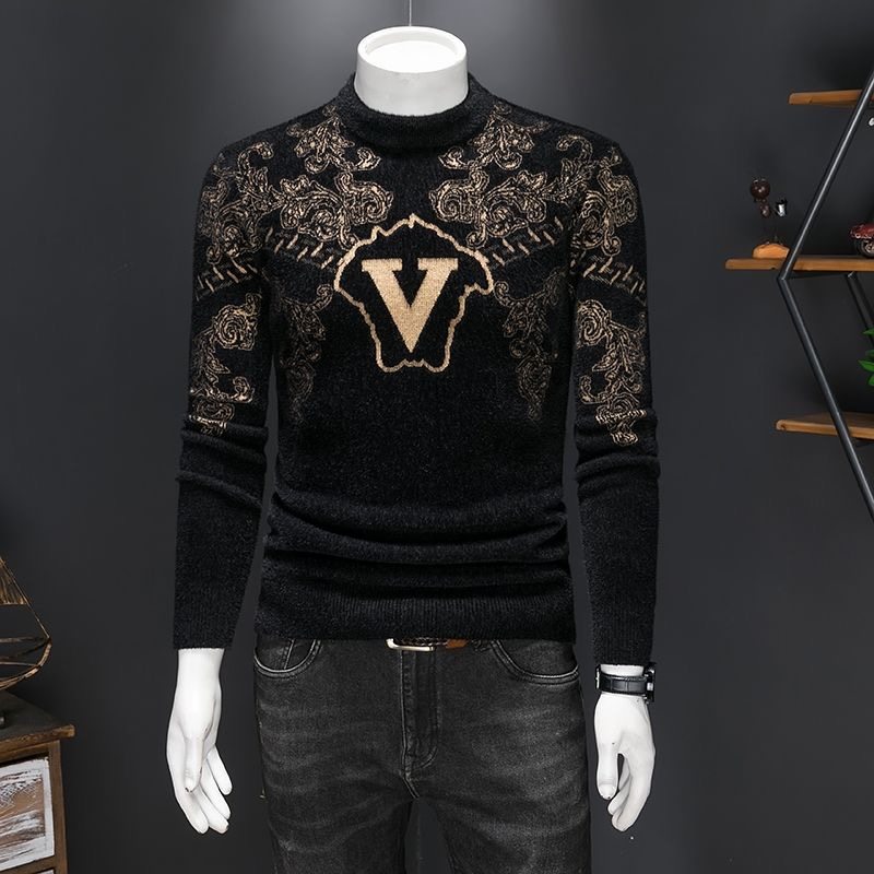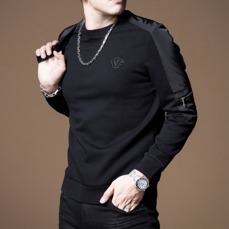 欧洲站轻奢时尚休闲套头卫衣男士潮牌字母印花圆领修身保暖打底衫