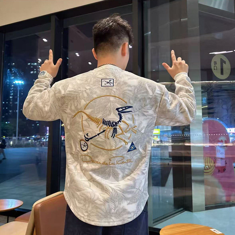 欧洲站新款男士卫衣套头潮秋冬韩版潮流时尚圆领宽松刺绣长袖上衣