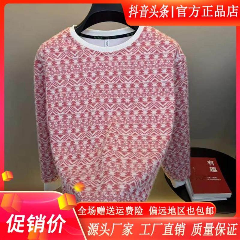 欧洲站拼色羊绒衫女冬装加厚圆领毛衣慵懒宽松卫衣套头针织打底衫