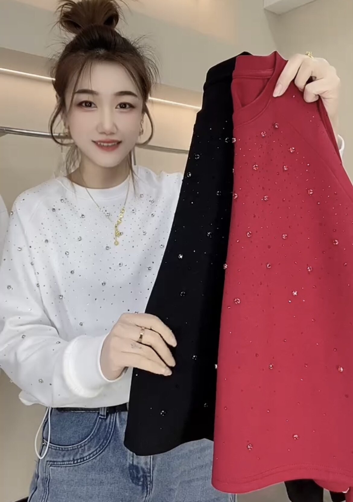 - 钉珠上衣女