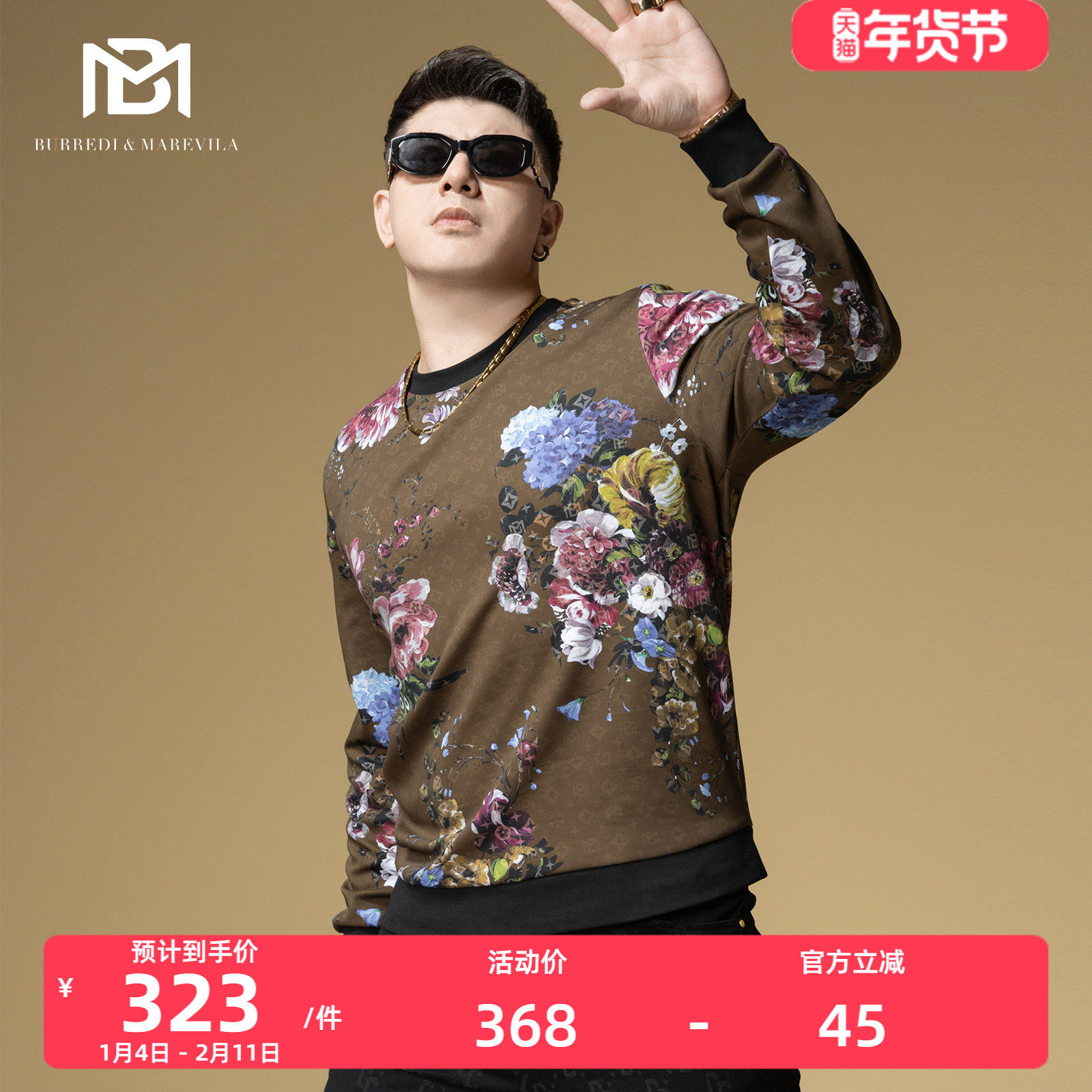 BM欧洲站卫衣男2025新款高街潮牌花卉印花男士秋季上衣休闲套头衫