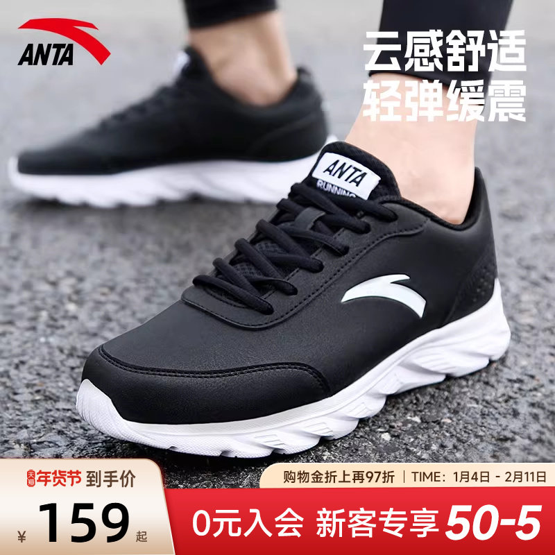 安踏运动鞋男鞋2025冬季新款防泼水皮面鞋子男减震轻便黑色跑步鞋