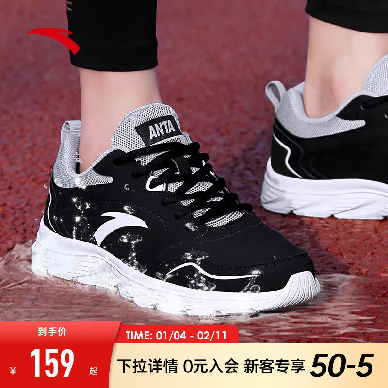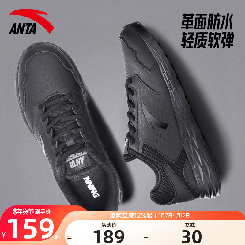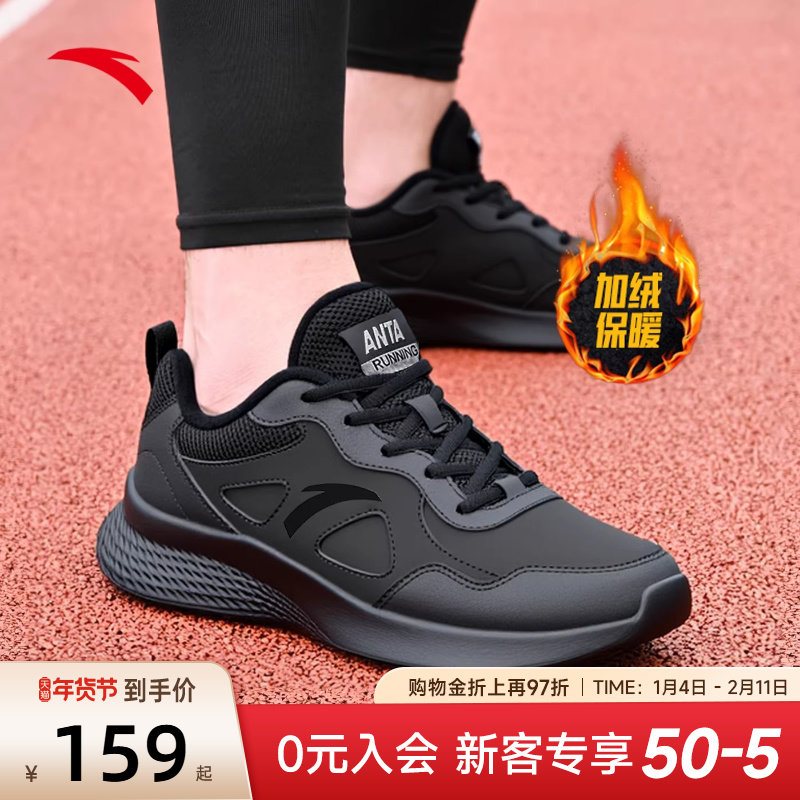 安踏运动鞋男鞋官方旗舰跑步鞋冬季黑色男款鞋子皮面防水休闲跑鞋
