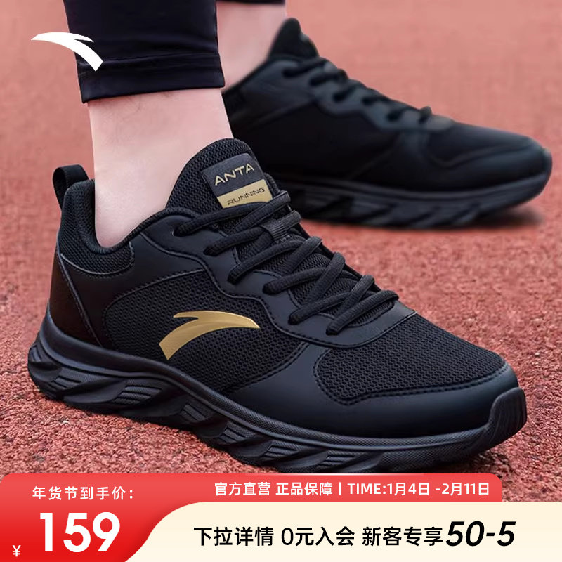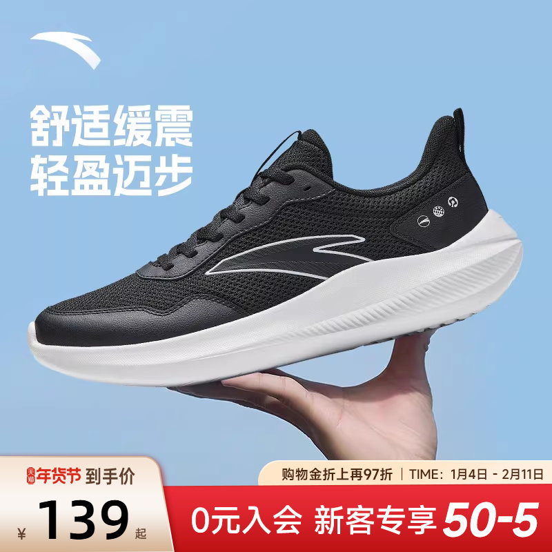 安踏运动鞋男鞋2025秋冬官网旗舰黑色男士网面透气休闲跑步鞋子男