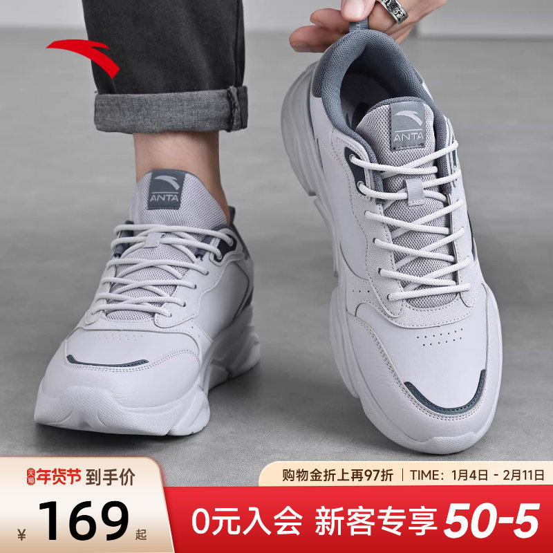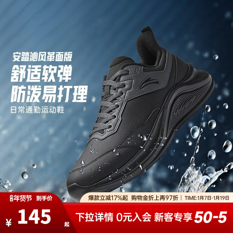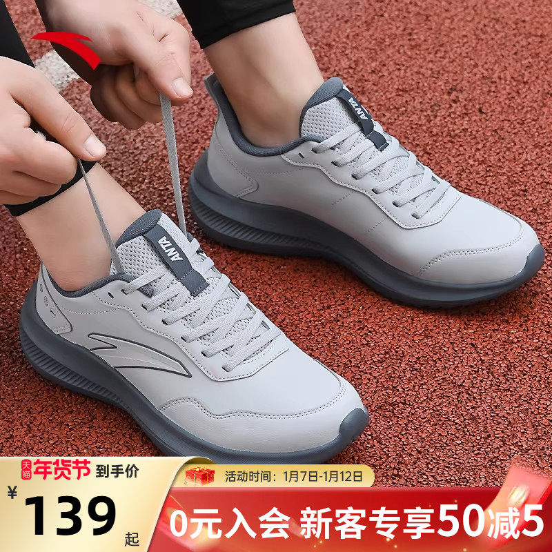 安踏运动鞋男鞋2025新款官方旗舰正品男士休闲鞋皮面防水跑步鞋子