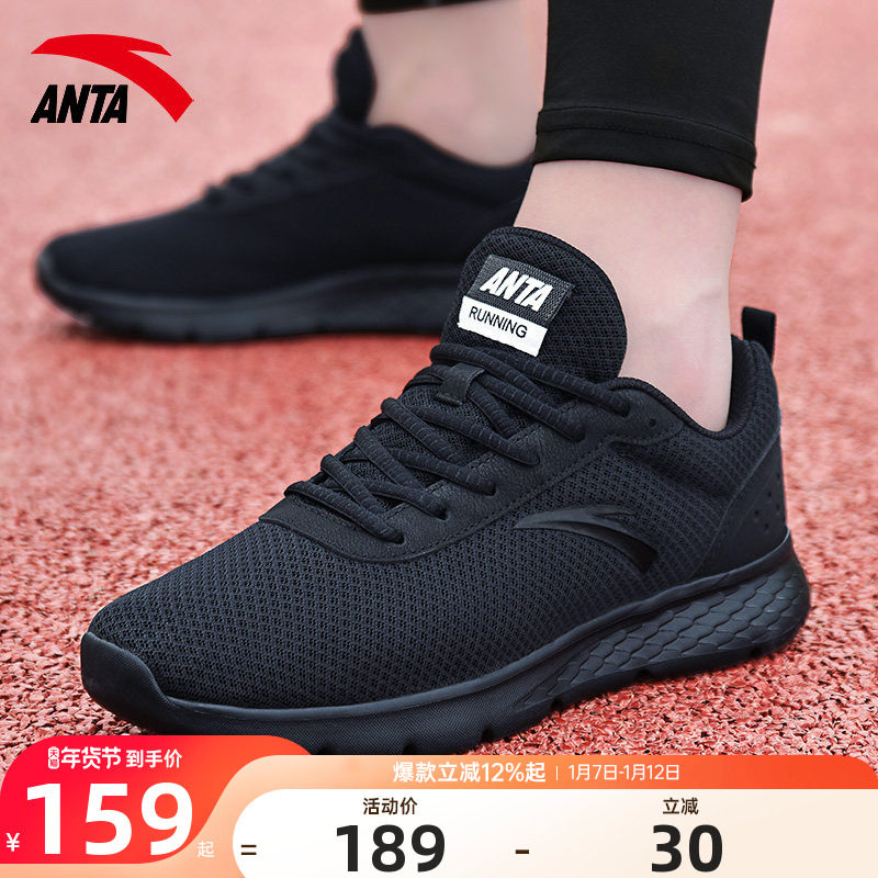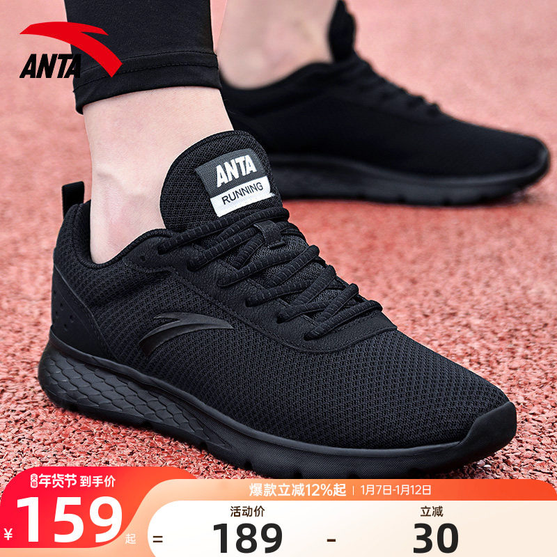 安踏运动鞋男鞋冬季新款黑色网面透气休闲鞋子官方旗舰轻便跑步鞋