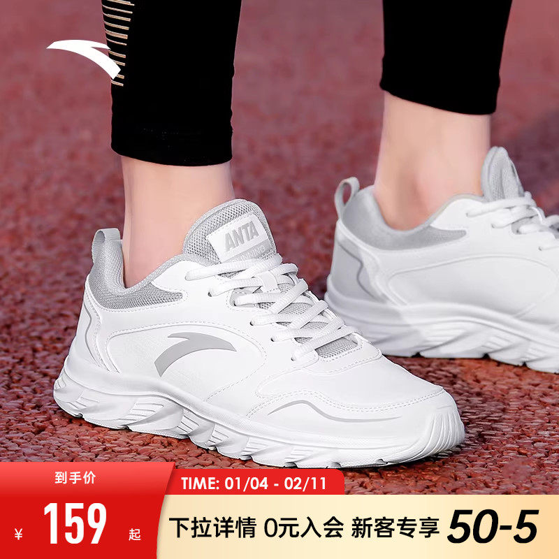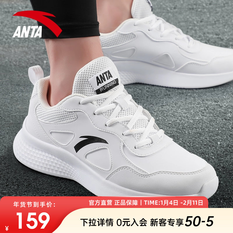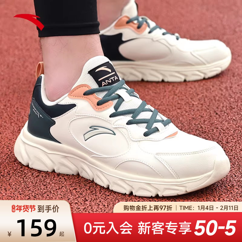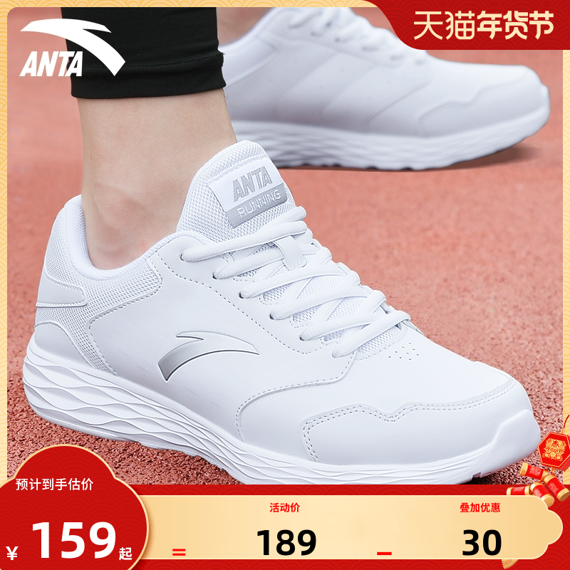 安踏运动鞋男鞋官网正品2026新款皮面防泼水男士休闲鞋子白色跑鞋