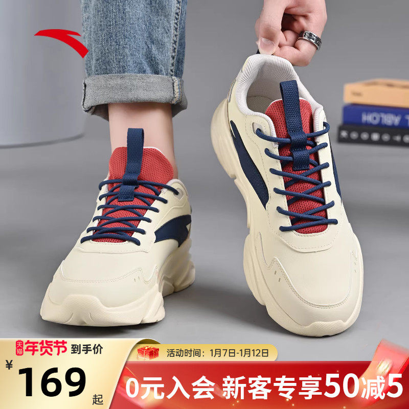安踏运动鞋男鞋2025冬季新款皮面防泼水轻便老爹鞋复古跑步鞋子男