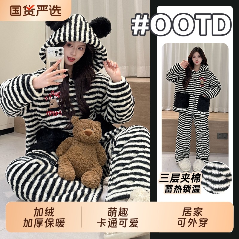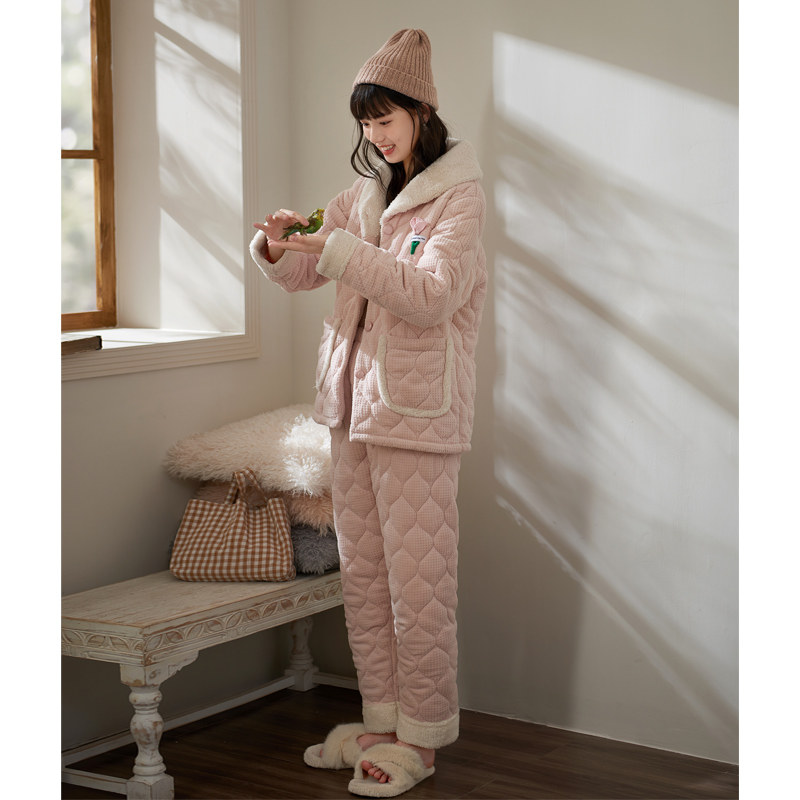 - 珊瑚绒夹棉加厚睡衣女