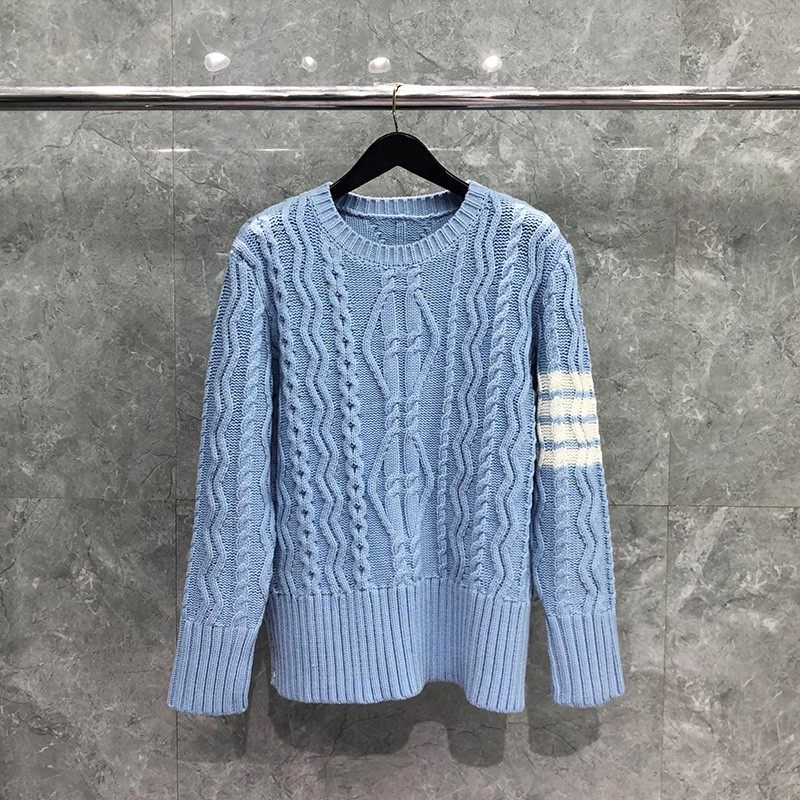 tb四条杠针织毛衫情侣潮韩版宽松套头麻花圆领加厚毛衣男女秋冬款