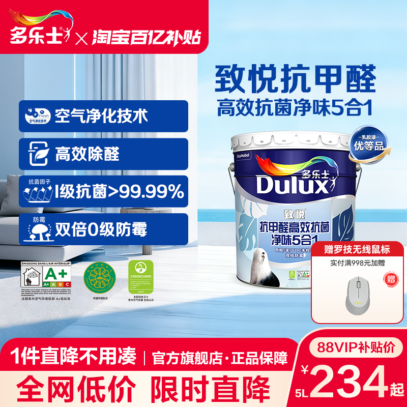多乐士乳胶漆致悦抗甲醛抗菌净味家用室内自刷内墙5合1面漆涂料