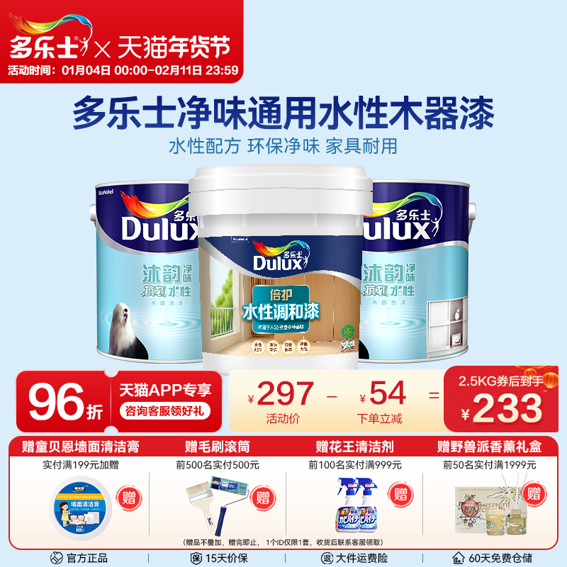 多乐士水性木器漆沐韵净味抗划面漆哑光清漆色漆家用自刷油漆涂料