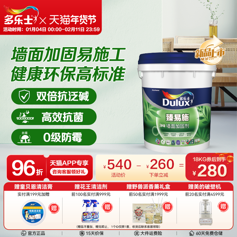 多乐士乳胶漆抗甲醛净味五合一油漆涂料室内家用墙漆环保自刷面漆