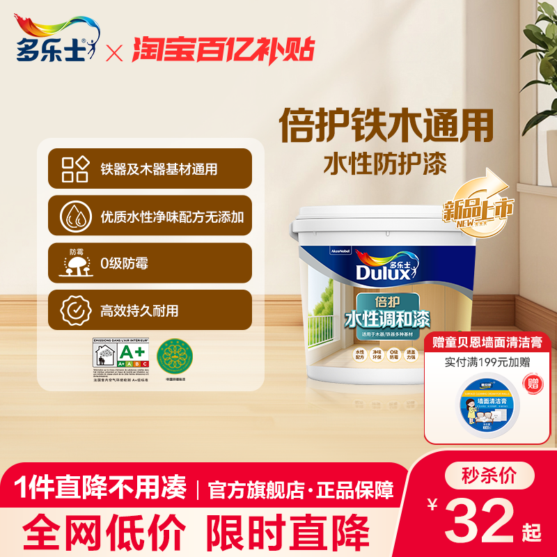 多乐士倍护水性调和铁器木器通用漆家用铁木门窗护栏专用清漆色漆