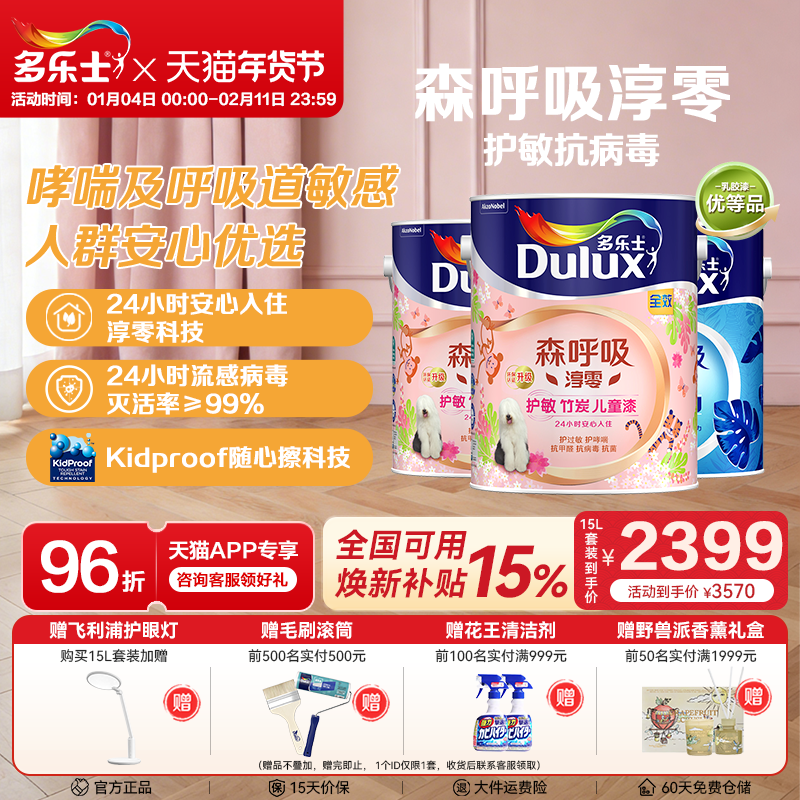 多乐士儿童乳胶漆森呼吸淳零护过敏护哮喘竹炭全效墙面漆油漆涂料