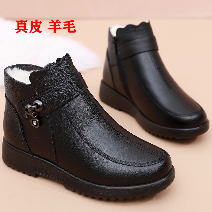 2025冬季羊毛加厚女靴真皮保暖棉鞋软底中老年妈妈短靴防滑雪地靴