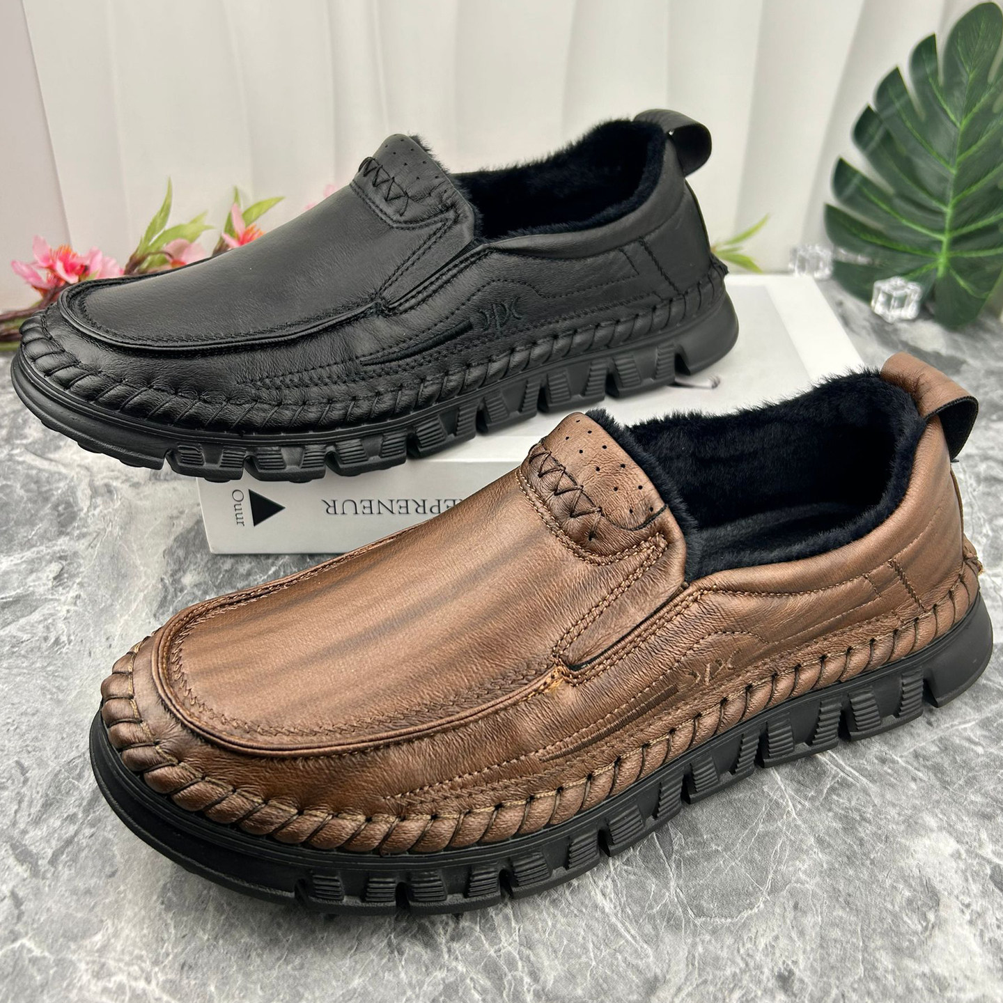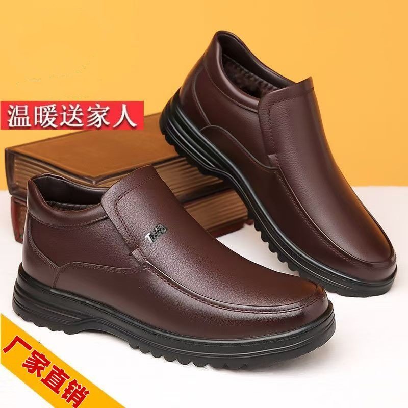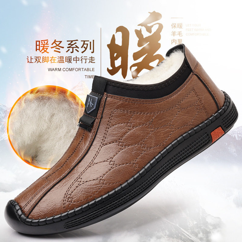 2025高档男式冬季新款棉鞋真皮皮鞋防滑保暖软底中老年爸爸休闲鞋